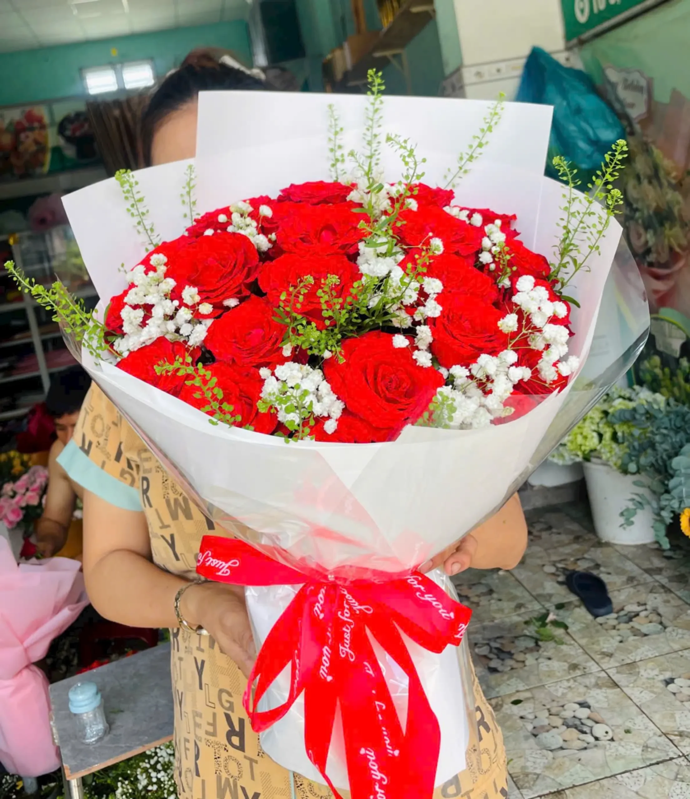 Bó Hoa Hồng Yêu Trọn Vẹn – Gửi Ngàn Lời Yêu Thương được thiết kế tỉ mỉ, kết hợp những bông hoa hồng tươi đẹp nhất cùng với phụ kiện trang trí tinh tế. Đây là món quà hoàn hảo để bạn trao gửi yêu thương và những lời chúc tốt đẹp nhất đến những người quan trọng trong cuộc đời.