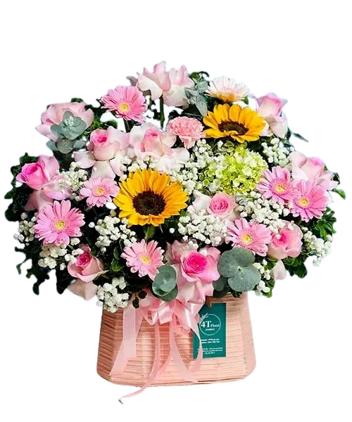 Với thiết kế sang trọng, tinh tế, giỏ hoa đại thịnh phù hợp để trưng bày ở nhiều không gian khác nhau, từ văn phòng làm việc đến phòng khách gia đình, mang đến vẻ đẹp rực rỡ và không khí tươi mới.