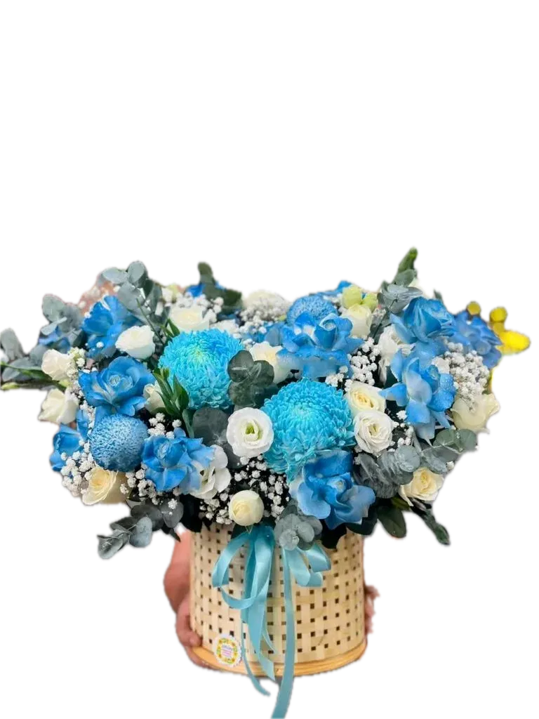 Hoa hồng xanh tượng trưng cho điều kỳ diệu, sự vĩnh cửu và những điều không thể. Giỏ hoa xinh này sẽ là món quà đặc biệt, gây ấn tượng mạnh mẽ với người nhận.