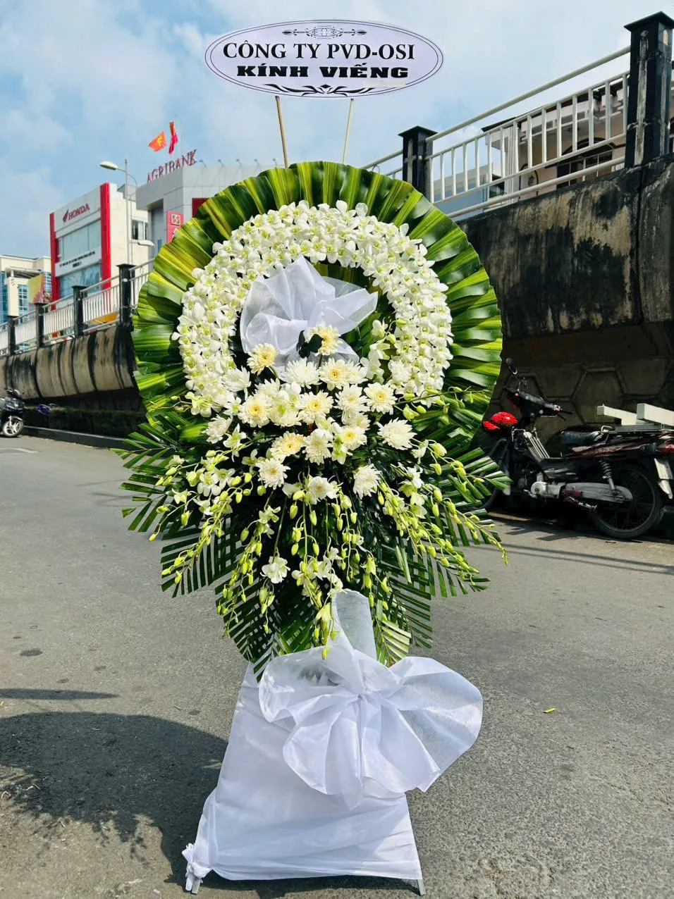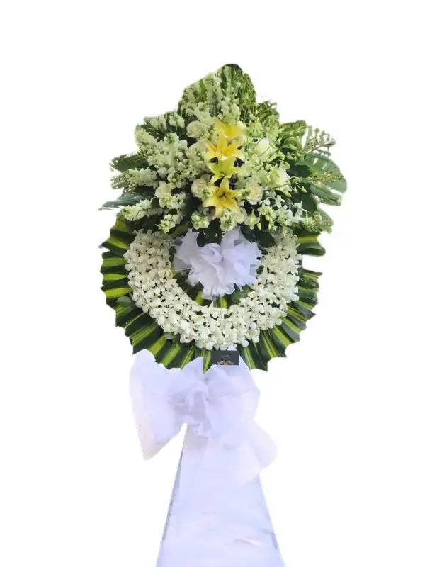 Bên cạnh kệ hoa viếng tang lễ, vòng hoa viếng tang lễ cũng là một lựa chọn phổ biến để bày tỏ lòng thành kính và chia buồn. Với thiết kế tròn trịa, vòng hoa chia buồn tượng trưng cho sự vĩnh cửu, sự sống tiếp nối và niềm tin vào một thế giới tốt đẹp hơn.