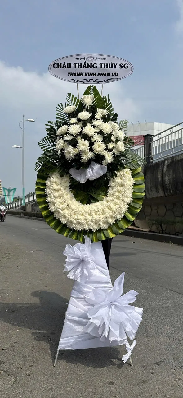 Bên cạnh kệ hoa viếng, vòng hoa viếng tang lễ cũng là một lựa chọn ý nghĩa để thể hiện sự thành kính và tưởng nhớ. Vòng hoa chia buồn tượng trưng cho sự vĩnh hằng, tình yêu thương bất diệt mà bạn dành cho người đã khuất.