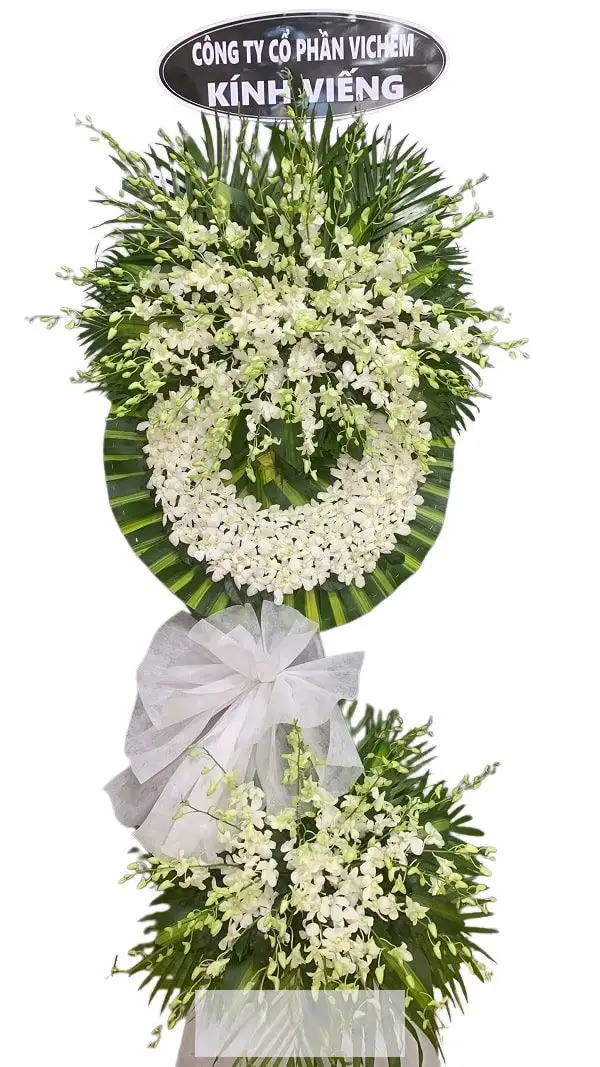 Bên cạnh kệ hoa viếng, vòng hoa viếng tang lễ cũng là một lựa chọn phổ biến. Hình dáng tròn trịa của vòng hoa tượng trưng cho sự vĩnh cửu và hy vọng vào một cuộc sống tốt đẹp hơn ở thế giới bên kia. Một vòng hoa chia buồn được kết từ những bông hoa tươi thắm sẽ xoa dịu phần nào nỗi đau mất mát.
