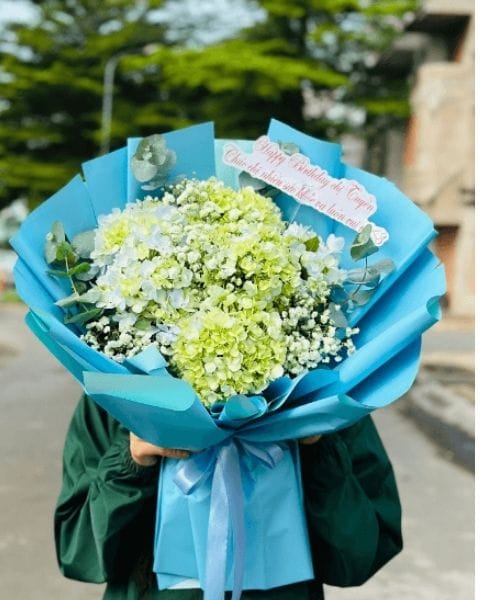 Một bó hoa tặng sinh nhật với cẩm tú cầu sẽ là món quà ý nghĩa và tinh tế, thể hiện sự quan tâm và yêu thương của bạn dành cho người thân yêu.